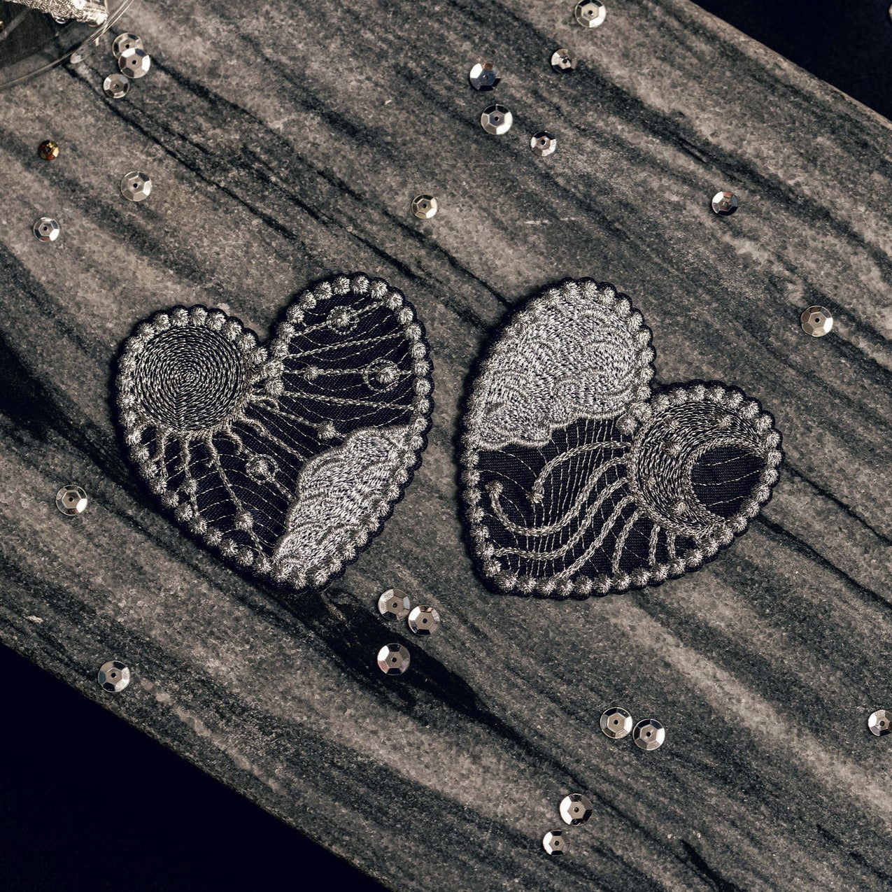 For those who love silver instead of gold... We have created our Silver capsule collection. Featuring hand embroidered brooches, earrings and machine embroidered patches in an icy palette of silver, gunmetal greys and deep navy blues.